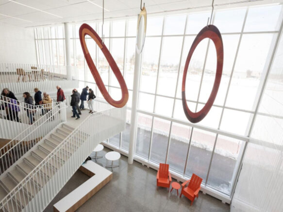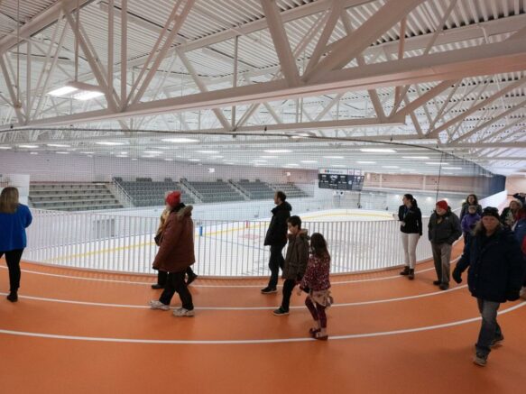 The opening of the Miskin Law Community Complex is the result of the cumulative effort and dedication of City staff, community supporters, and past and present City councils,” said Peterborough Mayor Jeff Leal. “This facility provides dynamic spaces like the twin-pad arena and walking track to help people be active, while also serving as a source for inspiration with a new library branch and public art installation.”