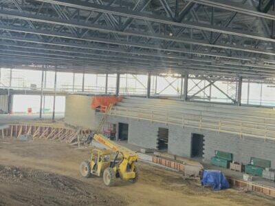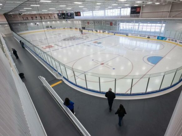 Details: The new arena will host twin pads, both of which offering a spectator viewing section. One of the rinks will as well feature an elevated walking track. The rinks will share a total of 12 team dressing rooms and 2 additional official rooms. The facility offers several additional amenities such as a team training center, a space to be leased by sporting groups, and 2 additional multipurpose rooms. There is as well a space allocated for the city office /administration /customer service staff. Additionally, there will be a concession stand, public washrooms, an elevator, and storage. The final part of phase one includes a library, bringing the square footage total to 116,600 ft2. It is hopeful that phase 2 and phase 3 will follow not long after, as both additional phases will bring more amenities to the community, such as a public pool.